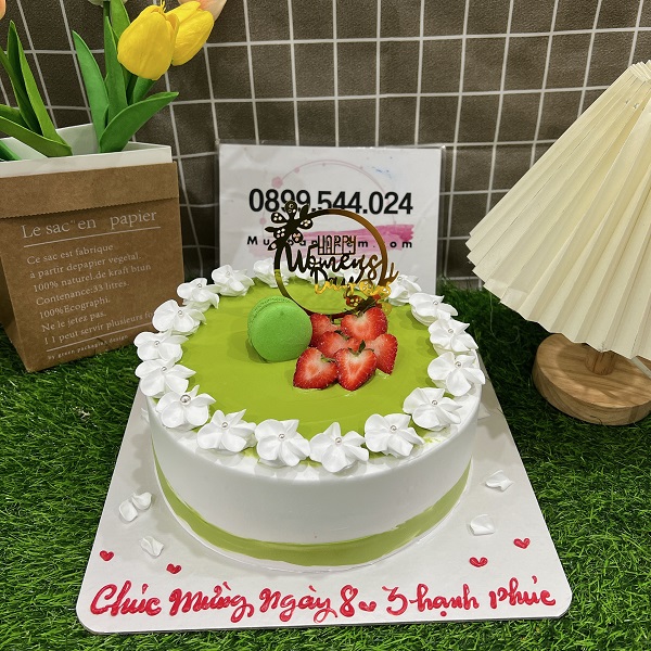 - Một mẫu bánh kem dành cho team thích màu xanh lá để các cậu tham khảo đây ạ!! Bánh kem kết hợp với dâu tây kèm theo bánh macaron tone xanh luôn ạ