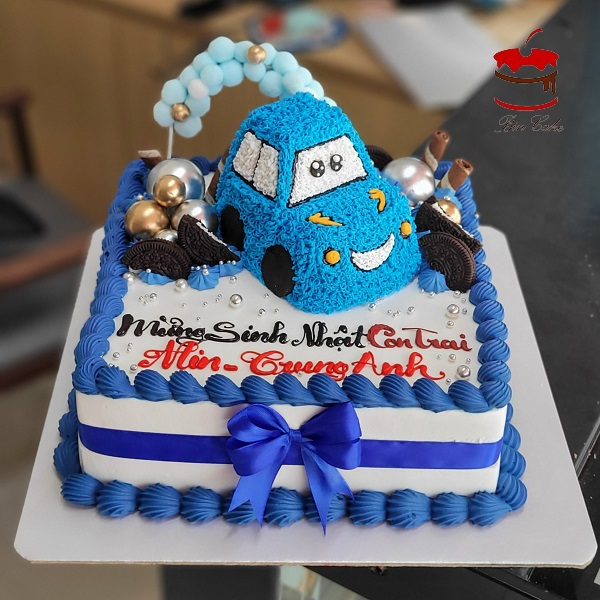 Một mẫu bánh kem dành tặng cho các bé trai nhân một ngày đặc biệt của bạn đây ạ!! Mẫu bánh kem hình vuông kèm bánh xe ô tô nhỏ gắn bên trên dành tặng cho bé trai, mẫu bánh được trang trí theo phong cách đơn giản nhưng lại không kém phần nổi bật nhờ đính kèm chiếc bánh xe ô tô nhỏ làm cho mẫu bánh kem được trở nên đặc biệt hơn những mẫu bánh cầu kì khác hơn bao giờ hết