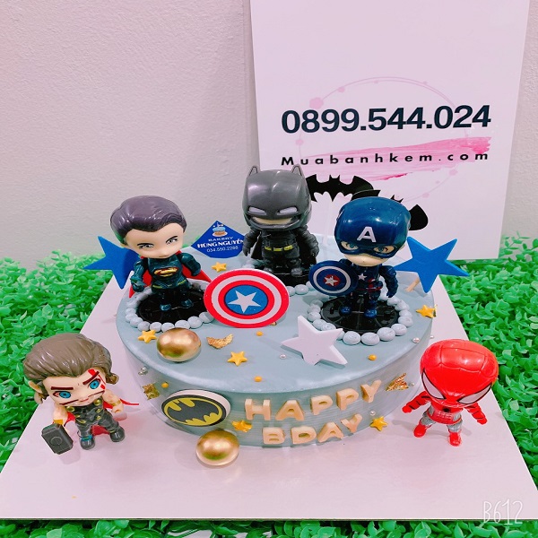 - Nếu bé nhà bạn là fan của những siêu anh hùng, vậy thì mẫu bánh này chắc hẳn là mẫu bánh phù hợp để bạn dành tặng cho bé trai nhà mình đấy ạ!! Mẫu bánh được decor các siêu anh hùng với mong muốn gửi gắm đến bé lời chúc về niềm tin, sức mạnh, mẫu bánh nhiều ý nghĩa như vậy chắc hẳn sẽ rất phù hợp để các phụ huynh mình mua tặng cho con em nhé ạ