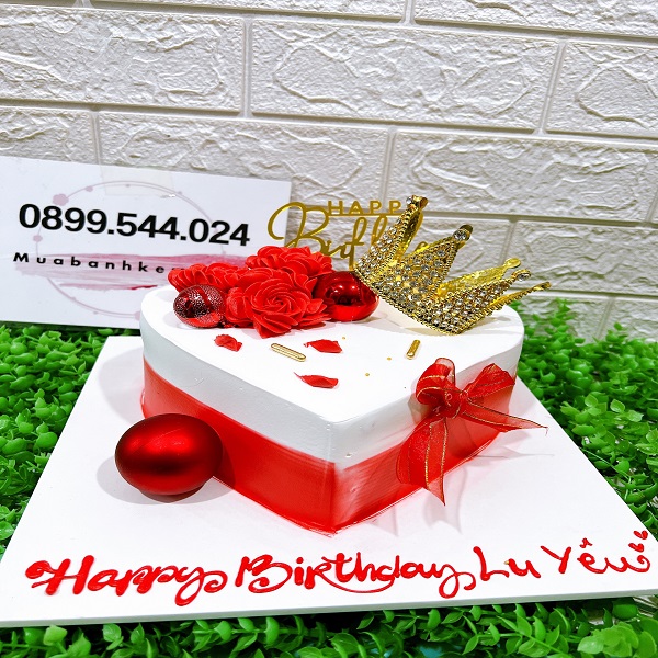 - Mẫu bánh sinh nhật trái tim decor vương miện kèm hoa tươi để các khách yêu tham khảo dành tặng cho mẹ, vợ hoặc người yêu nhé!!! Chắc hẳn đây chính là món quà khó có thể chối từ mỗi khi nhận được của các chị em đấy ạ
