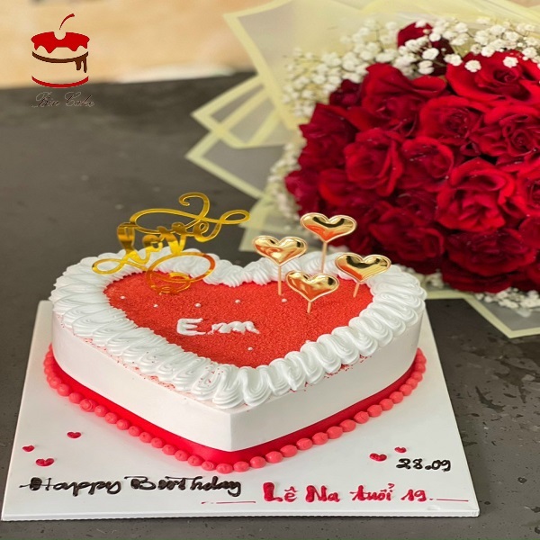 Bánh kem trái tim lớn được trang trí theo tone trái tim trong màu đỏ thích hợp dành tặng cho người yêu, bạn thân hoặc tặng cho vợ ... trong những ngày quan trọng đặc biệt nhất