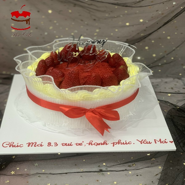 Một mẫu bánh kem dành tặng cho người thương của bạn vào một dịp đặc biệt đây ạ, nhanh tay ghé xem và đừng bỏ qua mẫu bánh kem dâu tây trang trí nơ đỏ này bạn nhé!! Mẫu bánh được trang trí vòng dâu tây trên bánh, đối với những bạn yêu nào thích dâu tây thì đây chắc chắn sẽ là mẫu bánh kem phù hợp với bạn đây ạ!! Nhanh tay rinh ngay mẫu bánh kem này về tặng người yêu hoặc tặng cho các bạn thân nữ của bạn trong một ngày đặc biệt bạn nhé!!