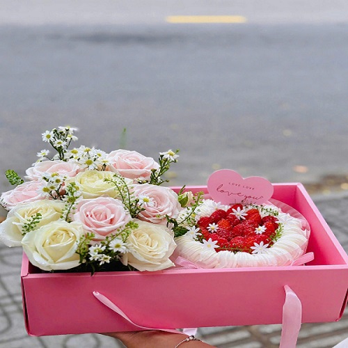 Set Giỏ Quà Tặng Bánh Kem Và Hoa